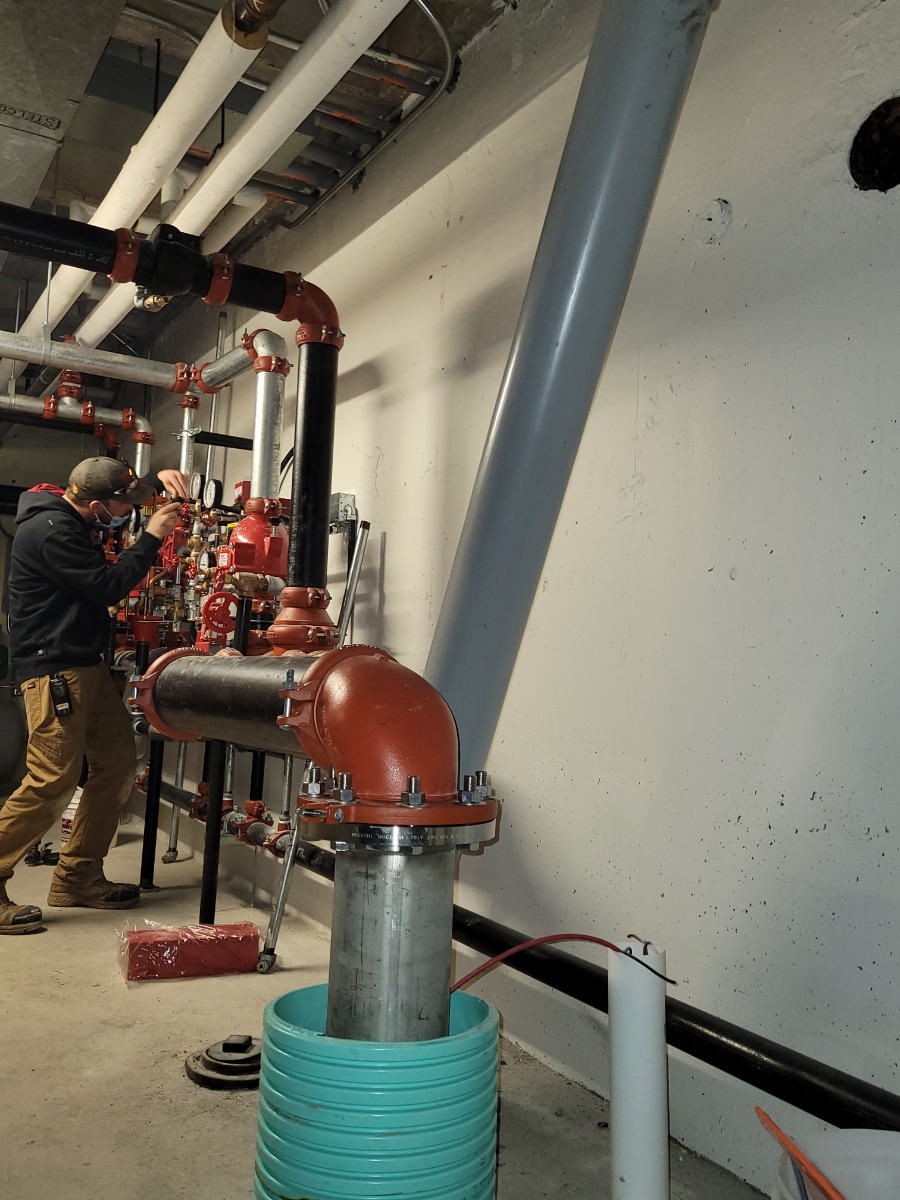 Installing new fire suppression / sprinkler systems in an existing healthcare building. Sprinkler system built with a new exterior pump house with underground holding tank and an upgrade to their commercial kitchen.